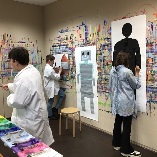 Beim freien Malen mit Gouchefarben auf großen Formaten kann beim Malen in besonderer Weise Selbstwirksamkeit erlebt werden. Malen wird jenseits aller Leistungsgedanken zu einer persönlichen Ressource. Es gibt kein Richtig oder Falsch. Hier wird der Prozess betont, nicht das Produkt. Das Bewusstsein, nur für sich selbst und nur für den Augenblick zu malen, kann sehr befreiend sein.
