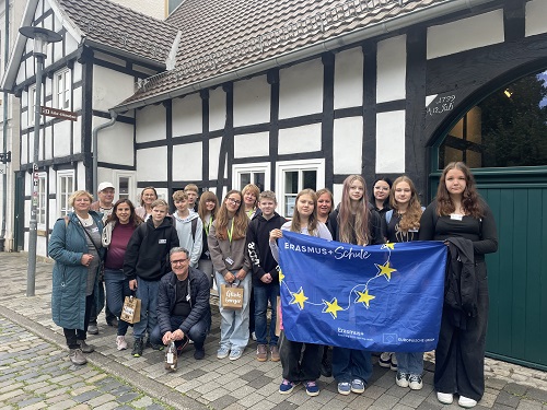 Ein besonderes Highlight war die Europawoche an der Peter-August-Böckstiegel-Gesamtschule vom 22. bis 26. September. In dieser Woche durften wir erneut Gäste unserer Partnerschule aus Naukšēni (Lettland) bei uns begrüßen. Gemeinsam mit unseren Schülerinnen und Schülern erlebten sie eine ereignisreiche Woche voller interkultureller Begegnungen, spannender Aktivitäten und gemeinsamer Projekte – ganz im Sinne des europäischen Gedankens.