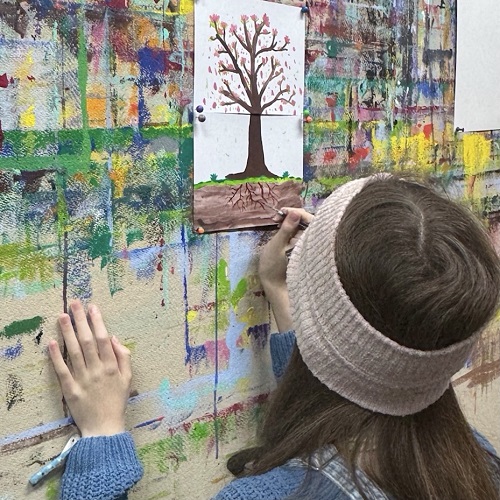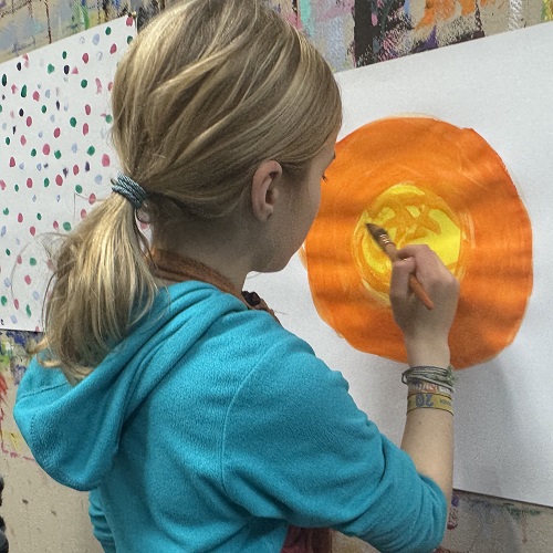 Beim freien Malen mit Gouchefarben auf großen Formaten kann beim Malen in besonderer Weise Selbstwirksamkeit erlebt werden. Malen wird jenseits aller Leistungsgedanken zu einer persönlichen Ressource. Es gibt kein Richtig oder Falsch. Hier wird der Prozess betont, nicht das Produkt. Das Bewusstsein, nur für sich selbst und nur für den Augenblick zu malen, kann sehr befreiend sein.