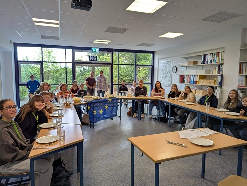 Neben diesen Aktivitäten stand vor allem der persönliche Austausch im Mittelpunkt. Unsere Schülerinnen und Schüler diskutierten gemeinsam mit ihren lettischen Gästen über europäische Werte, die Bedeutung einer nachhaltigen Zukunft und die Rolle der Digitalisierung in der Schule.